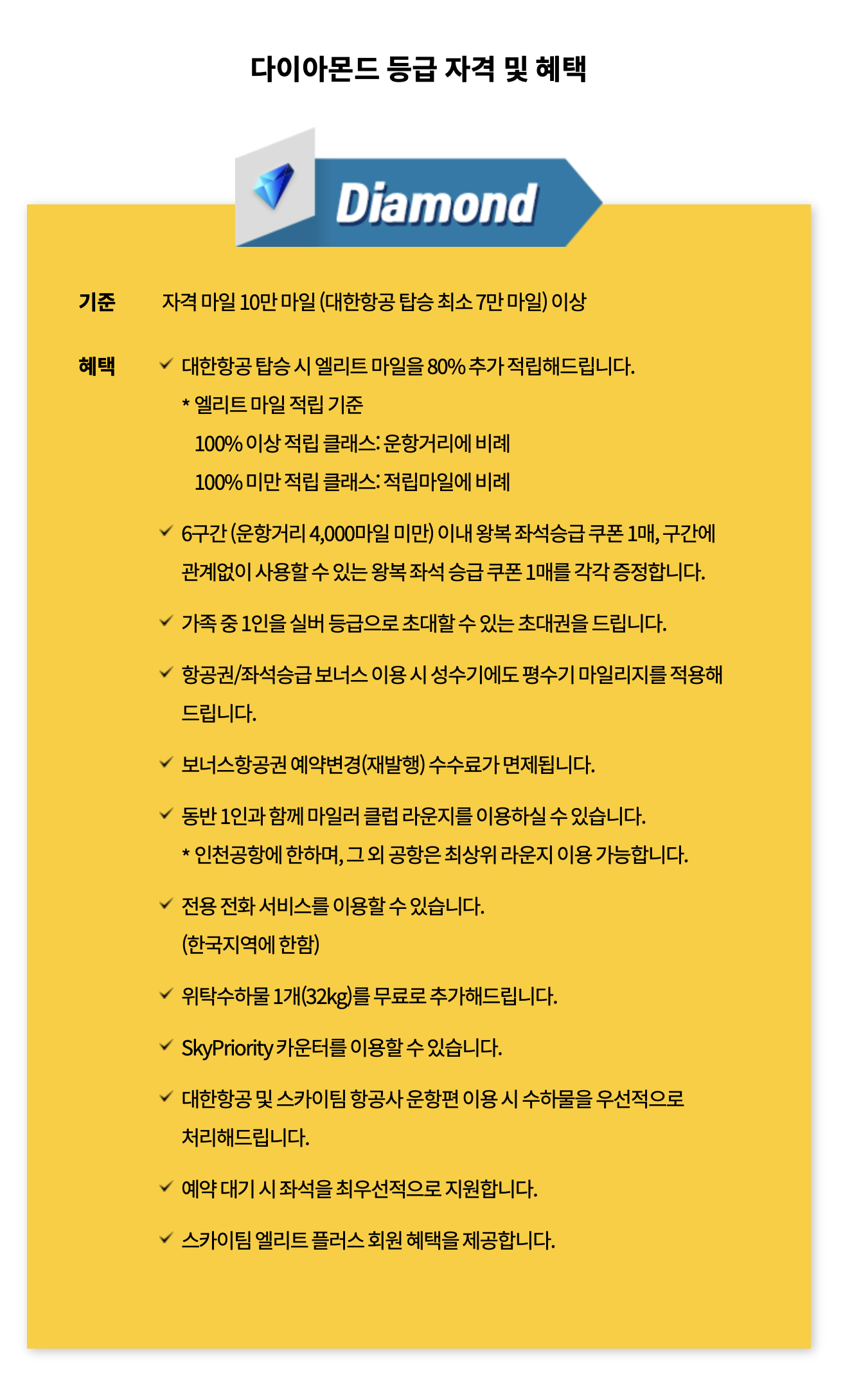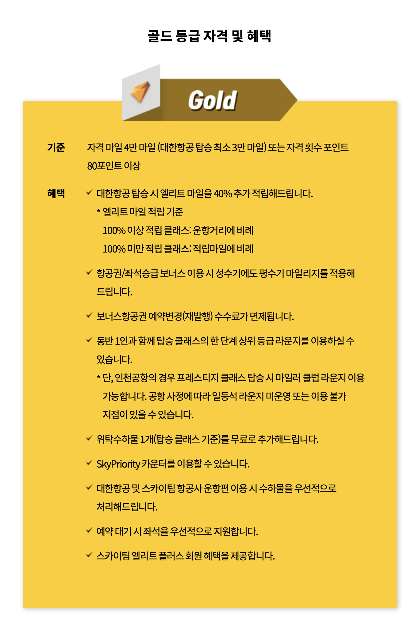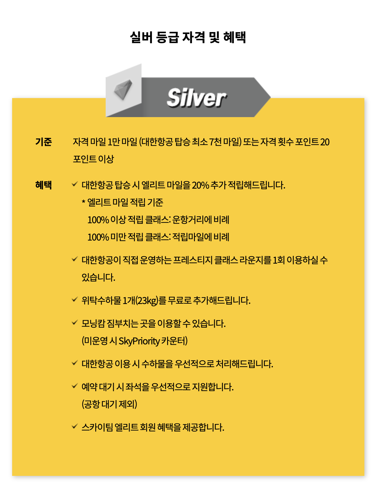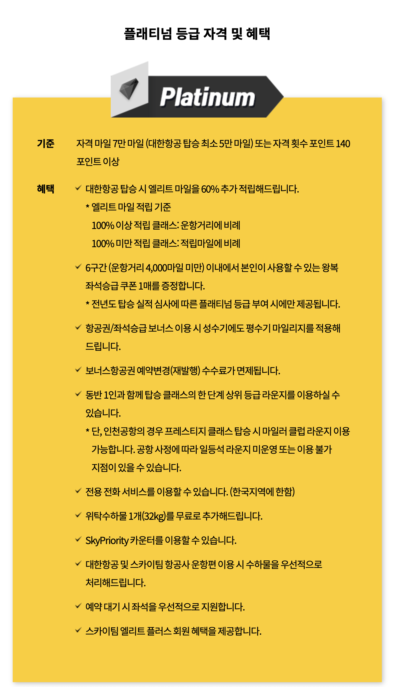 게다가 이번 변경되는 우수회원 제도는 1년단위이고 대한항공을 직접 이용해서 채워야 하는 마일리지 조건도 있습니다.