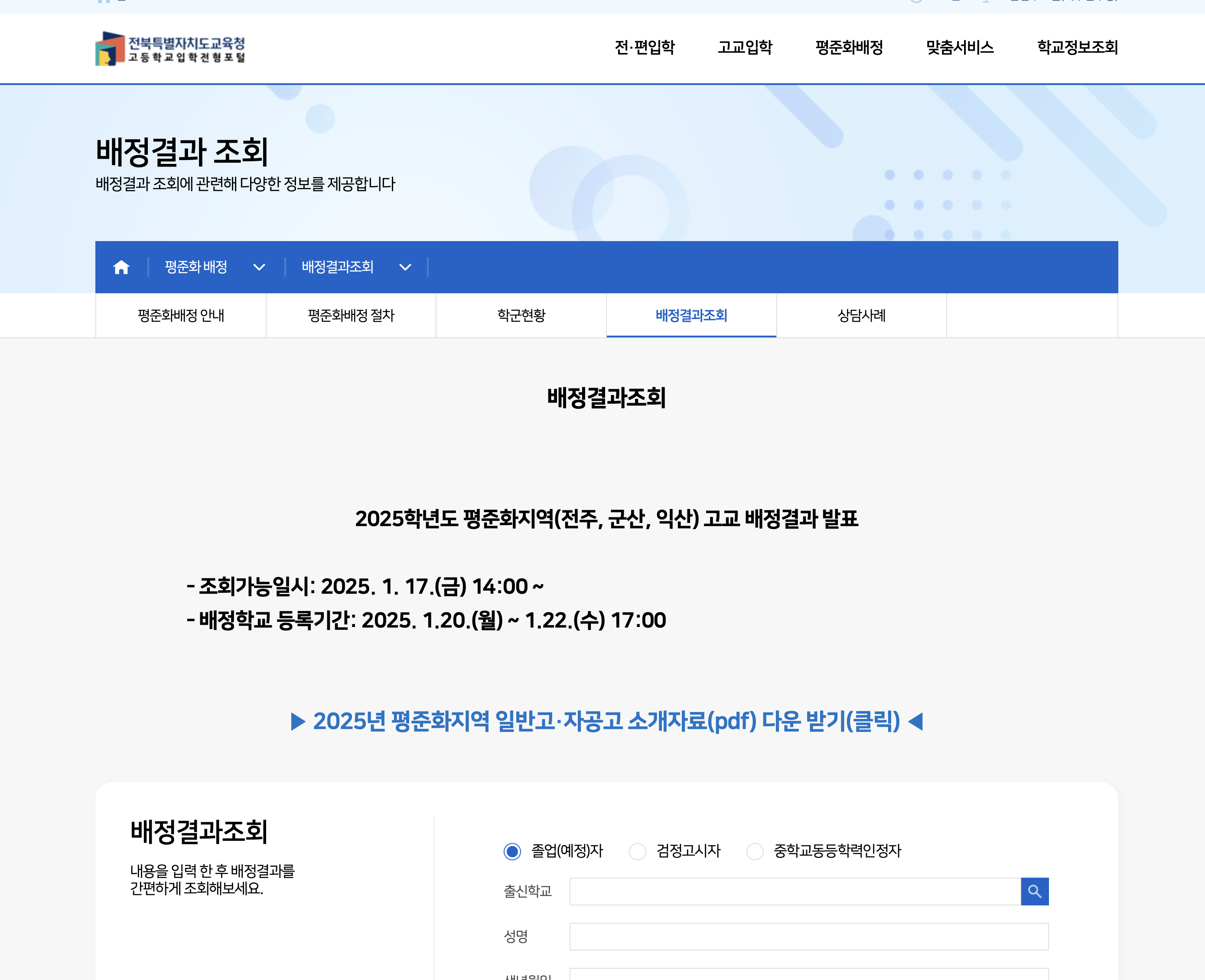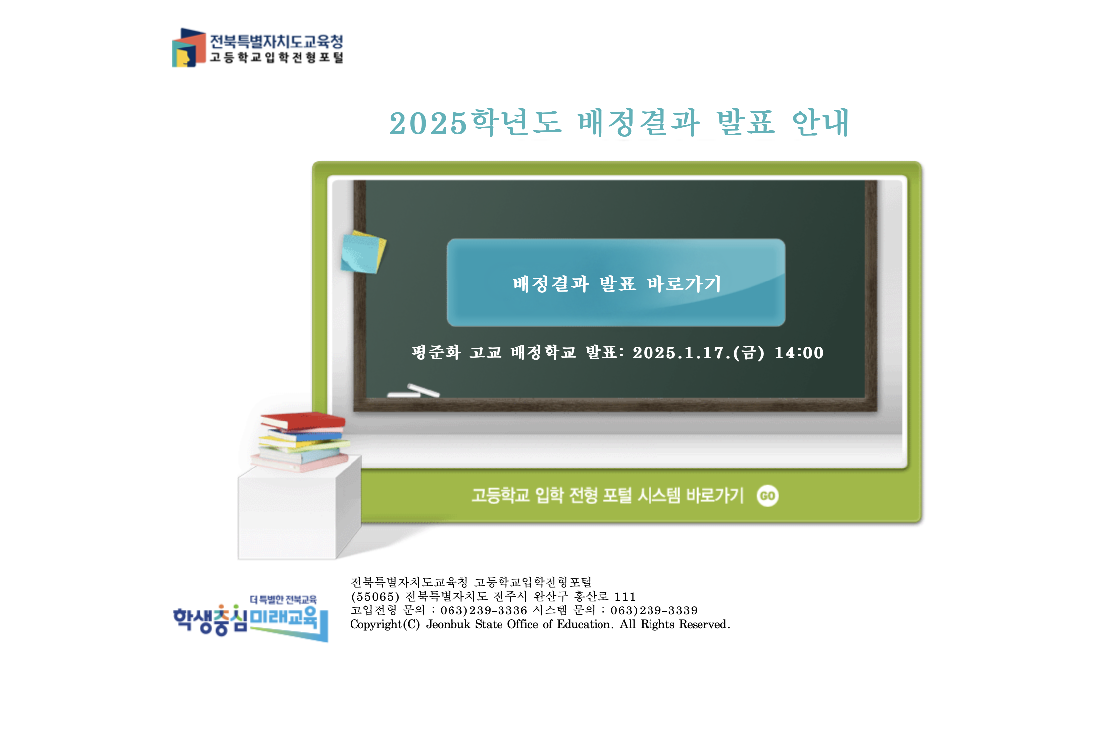 - 주요 목적: 전북 지역 고등학교 입학전형 안내, 온라인 원서 접수, 합격자 발표 등