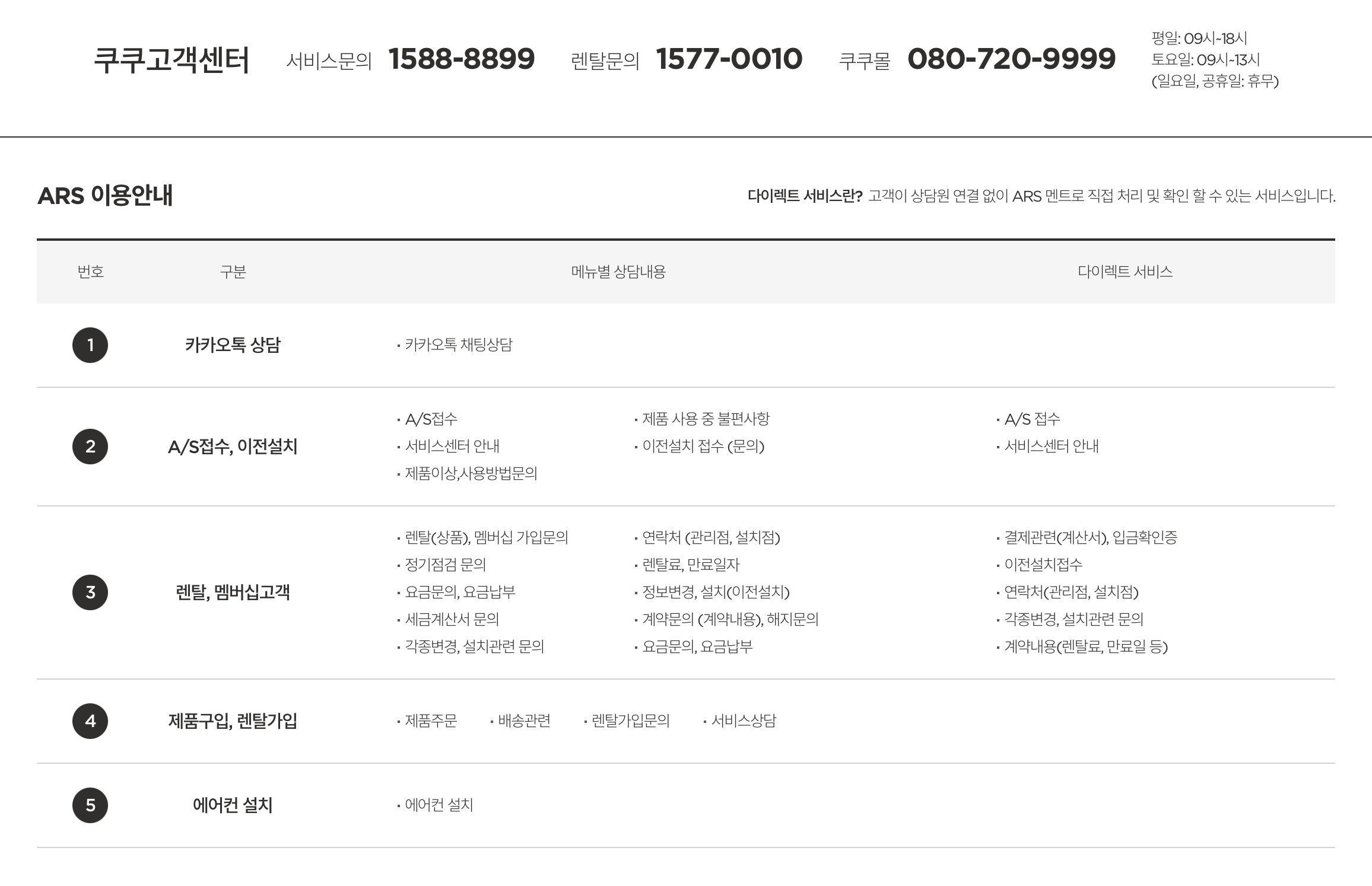 쿠쿠 AS센터는 고객 만족도를 최우선으로 생각하며, 지속적인 서비스 개선을 통해 최고의 만족을 제공하고자 합니다. 고객님의 피드백을 반영하여 더욱 향상된 서비스를 제공하기 위해 노력하고 있습니다. 영업 외 시간 문의는 자주묻는 질문 게시판을 이용하시면 도움이 됩니다.