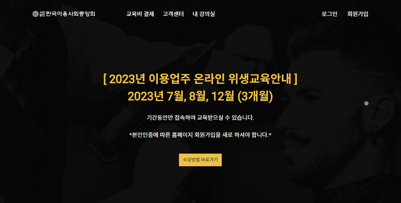 2023년 이용업주 위생교육은 2023년 7월과 8월 12월 3개월간 진행됩니다.