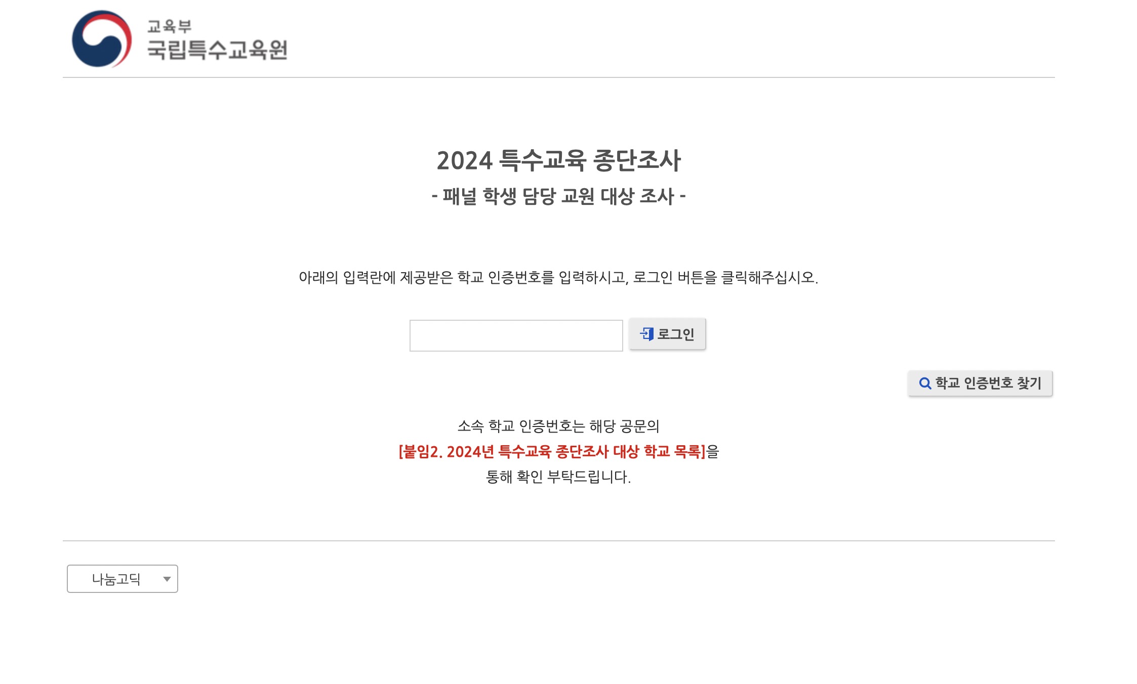 소속학교 인증번호는 2024년 특수교육 종단조사 대상 학교목록을 통해 확인하시기 바랍니다.